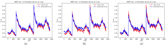 The performance of ITM put options in different features (a) represents the LSTM with realized skewness, (b) represents the LSTM without realized skewness, (c) represents the LSTM with realized skewness and realized kurtosis.