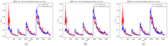 The performance of OTM put options in different features (a) represents the LSTM with realized skewness, (b) represents the LSTM without realized skewness, (c) represents the LSTM with realized skewness and realized kurtosis.