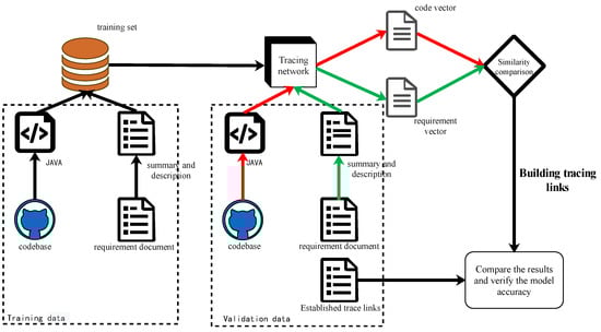 Requirements traceability is defined as the ability to describe and track the lifecycle of requirements, including the ability to trace backwards and forwards through periods of continuous refinement and iteration. The construction of requirements traceability relationships can support various software engineering activities, including change impact analysis, regression test selection, cost prediction, and compliance validation [2]. The need to establish and maintain traceability links between requirements, design, code, faults, and test cases to demonstrate that the software system is safe to use is specified in regulatory standards for high-reliability systems (e.g., Federal Aviation Authority (FAA) standard DO178b/c) [3]. However, creating traceability relationships is more difficult and is prone to errors or omissions. In practice, manually creating traceability links or capturing them as a byproduct of the development process is often incomplete and inaccurate [4], even in some critical security systems [5]. In particular, software source code has a higher level of structured information and inherent complexity than other modules in a software system, containing more semantic and functional features that represent the software system. This makes it possible to develop requirements-to-code tracing tools that will support the field of software engineering and are essential for improving the efficiency and quality of software development.