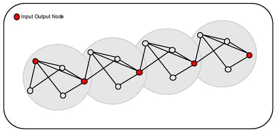 Huang et al. [29] introduced enhanced convolutional neural networks (CNNs) based on the Erdos–Renyi (ER) random network model, Watts–Strogatz (WS) small-world network model, and the Barabasi–Albert (BA) scale-free network model, to carry out medical imaging classification of brain tumors. CNN models based on complex networks (CNNBCN) are generated using undirected random graphs such as random, small-world, and scale-free networks. The random graph is first converted to a directed acyclic graph (DAG); afterward, a data stream module is added with operation modules such as deconvolution, batch normalization, and activation functions. With these steps, a final module is created that can be used in multiple groups, as in the proposed CNNBCN architecture. Figure 2 shows an example of CNNBCN structure with four modules, each consisting of input, hidden, and output layers. The red circles in the figure represent the input and output nodes connecting the multiple random graph networks. The final output of the last or fourth random graph network is passed to the classifier. Huang et al. evaluated their proposed CNNBCN on the basis a medical dataset obtained from 233 patients and consisting of 708 meningioma images, 1426 glioma images, and 930 pituitary tumor images. In the experiment, the CNNBCN consisted of five modules, with 32 nodes in each module. The proposed CNNBCN achieved very high accuracy levels of 100% for the training dataset and 95% for the test dataset, and with a reduced training time, compared with ResNet-151 and DenseNet-161.