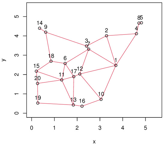Spatial sampling set illustrated by the graph with 20 vertices is depicted in Figure 1. The neighborhood system is specified by the graph edges.