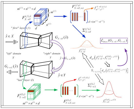 are obtained by propagating samples and , and . On the basis of the previous assumptions, we can now form the novel feature-map-based cycle consistency objective term as follows: