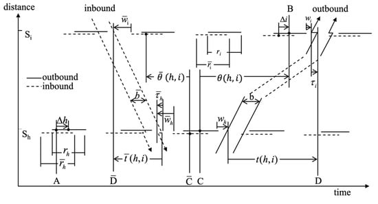 where are the minimum and maximum values for the outbound (inbound) speed, respectively; are the minimum and maximum values for the outbound (inbound) speed change, respectively; ; is an integer; are binary integers, . The key variables in the model by Little et al. (1981) are shown in Figure 2.