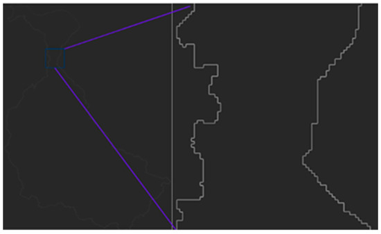 We also used the data from Table 4 to estimate the length of Citarum watershed boundary. By Equation (1), the must be the smallest possible value, which is . We also know that the for that is 41,922, with . By using Equation (6), the estimation of Citarum watershed boundary length is 83,884 px. Although the data that we obtained is still in pixel units, we must convert it to kilometers. We found by ARCGIS that the smallest resolution (11,994 px) stated 110.22 km, which means 1 px = 0.009189595 km. Therefore, the length of Citarum watershed boundary in kilometers is 770.49 km.