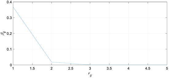 where β0 is the maximum attraction, that is, when the attraction rij = 0, usually β0 = 1.