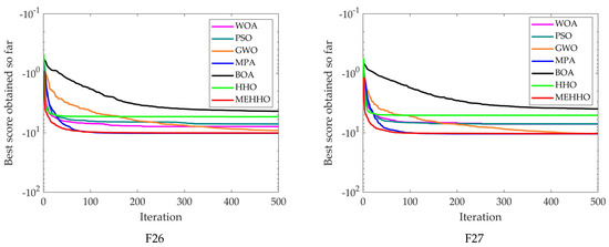 Convergence curve of partial fixed-dimension multimodal functions (F26, F27).