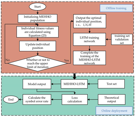 The process of implementing the MEHHO-LSTM for channel estimation and detection is shown in Figure 6. The specific steps are as follows: