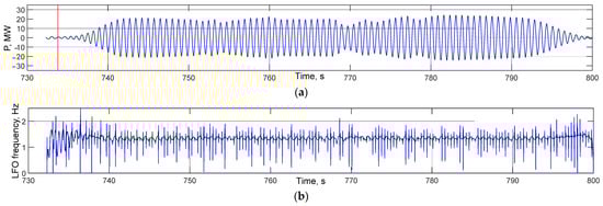 The following methods can also be used for the analysis of the LFO: the fast Fourier transform (FFT) [49], the Prony transform (PT) [50], and the Wavelet transform (VT) [51]. However, each of these methods has its limitations. For example, PT and FFT can be used only for stationary signals, while VT cannot be effectively used for the analysis of the LFO due to the time-consuming procedure of selecting a basic Wavelet. In [52], the application of the Hilbert–Huang method for real-time analysis of LFO is proposed. However, the proposed method has a number of disadvantages associated with the complexity of processing narrowband signals; the detection of intermittent oscillations and the analysis of close dominant modes are also difficult. In the study [53], the Pseudo-Newton method was used for the analysis of the LFO, which cannot be used in real-time due to the significant number of iterations of the calculation. The authors of the study [54] proposed the Analytical Modal Decomposition (AMD) method, which is similar to EMD but has a simpler structure and high reliability. However, for this method, there is still the problem of analyzing narrowband signals.