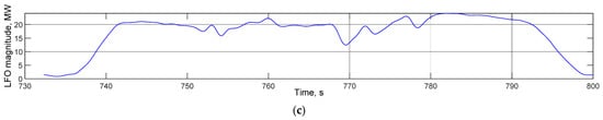 The range of low-frequency oscillations is usually between 0.1 and 3.0 Hz [18]. In addition, LFOs are divided into local and system-wide based on the degree of localization [19], with the latter impacting the whole power system. Local LFOs are usually mutual oscillations of synchronous generators, while system-wide LFOs are those of subsystems or generator groups. An LFO ensues from the interaction of several rotating masses in an area of a power system, which determines its non-linearity and non-stationarity [20,21]. Additional components, which correspond to the mutual action of concentrated system regions or entire power systems, may occur.