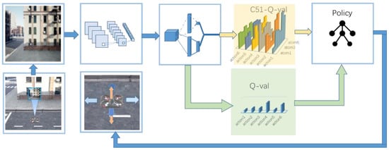 - Bellemare, M.G.; Dabney, W.; Munos, R. A Distributional Perspective on Reinforcement Learning. In Proceedings of the International Conference on Machine Learning, Sydney, Australia, 6–11 August 2017. [Google Scholar]