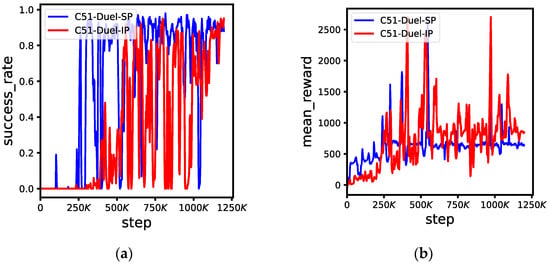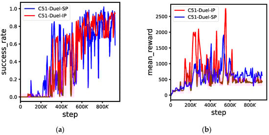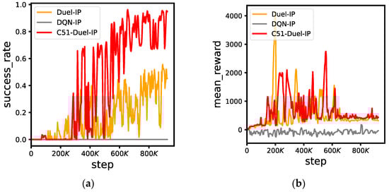 As shown in Figure 8, the C51-Duel-IP algorithm also has similar results to the C51-Duel-SP in terms of success rate and mean reward in this experiment.