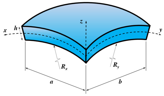 - Cao, Y.; Khorami, M.; Baharom, S.; Assilzadeh, H.; Dindarloo, M.H. The effects of multi-directional functionally graded materials on the natural frequency of the doubly-curved nanoshells. Compos. Struct. 2021, 258, 113403. [Google Scholar] [CrossRef]