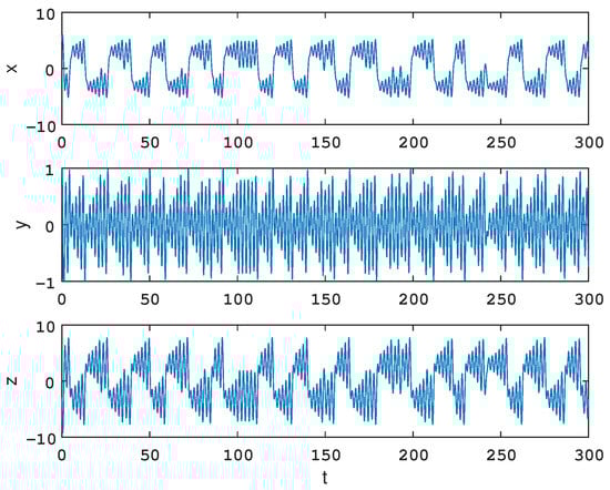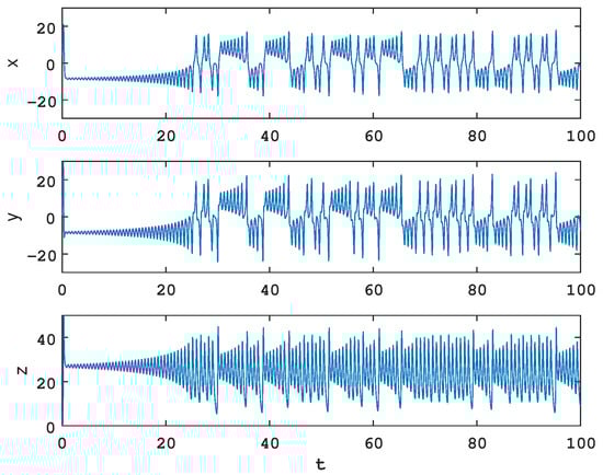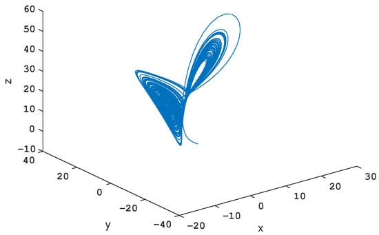 The chaos diagram of Lorenz’s system at initial condition = [5, 1, −3]T.