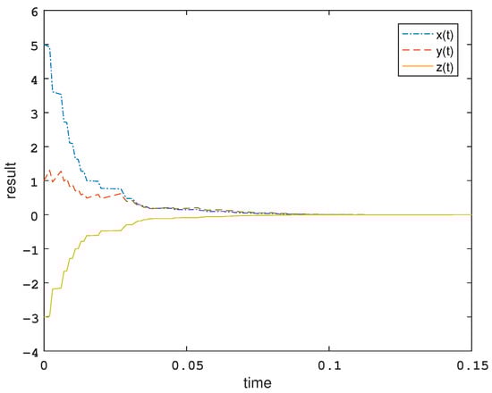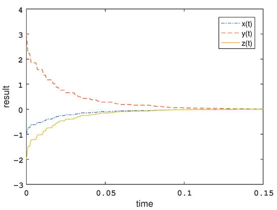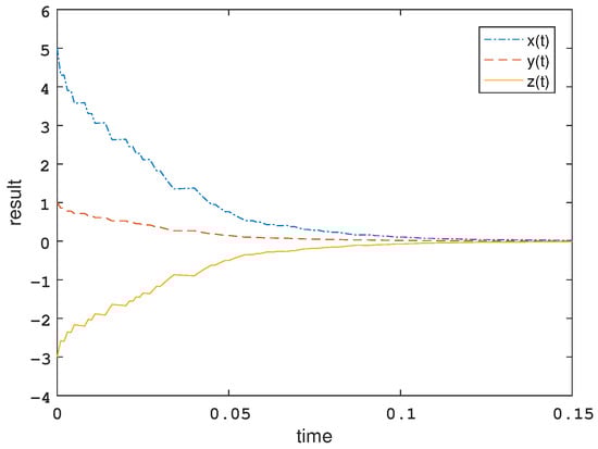 Comparing the results of the method in [] and this paper, one can carefully observe that the control method in this paper saves time in that all of them were achieved in far less than 0.2 unit of time as opposed to what obtains in []. As a matter of fact, the control time for the Lorenz’s, Chua’s and Rössler’s systems dropped by about 25%, and can even be less depending on the choice of , compared to the control time in []. In addition, there are infinitely many . One limitation of this method may be the choice of appropriate . The good thing, however, is that the system does not introduce conservatism as is time-varying.