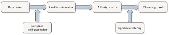 The spectral clustering-based methods usually perform the following two steps. (1) The representation coefficients are learned by a subspace representation model, which is used to construct the affinity matrix. (2) The final clustering result is obtained by performing spectral clustering on the affinity matrix. The basic framework of the spectral clustering-based SC methods is shown in Figure 3. It is worth pointing out that the representation coefficients learned in the first step play a vital role in the clustering effectiveness. However, owing to the complexity and diversity of the inherent unknown structure of the real data, some assumptions must be introduced on the data distributions, such as sparse or low-rank assumptions in the representation learning, thus leading to different ways to construct or learn representation coefficients.