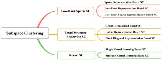 - We systematically review the recent research progress of SC methods and summarize them into three categories and further subcategories according to the strategy of constructing representation coefficient; see Figure 4.