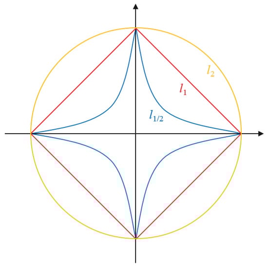 where the constraint is used to avoid the trivial solution of representing a data point as a linear combination of itself, i.e., . In optimization, -norm is usually regarded as the best convex relaxation of norm, which can be used to generate sparse solutions due to its nonsmoothness (see Figure 5 for the geometric interpretation). Note that model (3) is a convex optimization, which can be effectively solved by the convex programming algorithms, such as the alternating direction method of multipliers (ADMM) [117] and the semi-smooth Newton augmented Lagrangian method (SSNAL) [118].