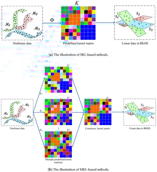 - Zhao, B.; Kwok, J.T.; Zhang, C. Multiple kernel clustering. In Proceedings of the SIAM International Conference on Data Mining, Sparks, NV, USA, 30 April–2 May 2009; pp. 638–649. [Google Scholar]