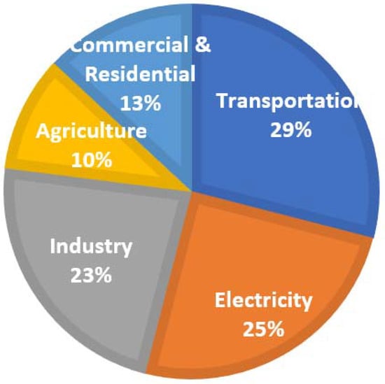 Emissions of greenhouse gases in the US by economic sector in 2019 (www.epa.gov/ghgemissions/overview-greenhouse-gases, accessed on 7 July 2021).