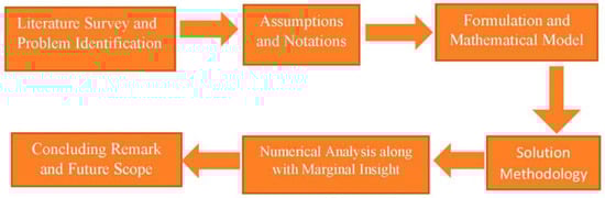 It is common knowledge that any imperfect real-world production system has a random imperfect rate. This research takes a step in that approach by extending an inventory model to include random faulty rates. A supply chain with a random demand rate for different warehouse models were explored by Sarkar et al. [16], considering a single-stage production process. Jawla and Singh [17] gave a multi-item and imperfect-item economic production quantity model. They considered a multi-setup for production and rework, and also discussed a learning environment with preservation technology. Khara et al. [18] designed an inventory model considering the influence of imperfect manufacturing on cost. Moreover, demand was taken as reliability-dependent. Considering imperfect production systems, Al-Salamah [19] developed an EPQ model with adjustable rework rates that are both synchronous and asynchronous. In asynchronous production, defective things are held until the entire production lot is finished, but in synchronous production, as soon as the defective goods are generated, they are reworked. With a multiple transportation facility, Sarkar et al. [20] explored a supply chain model for biodegradable products. In a similar direction, Gupta et al. [21] discussed multiple distribution network with integrated policy. Lin [22] developed an EPQ model with uncertain demand, an imperfect rework process, and backlogging. He assumed that imperfect items were stocked separately and then reworked.