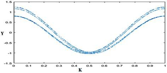 The Sine map is a 1D chaotic map that shows high complexity and non-linearity. The equation of this system transforms inputs into the range [0, 1] [25] and is given by: