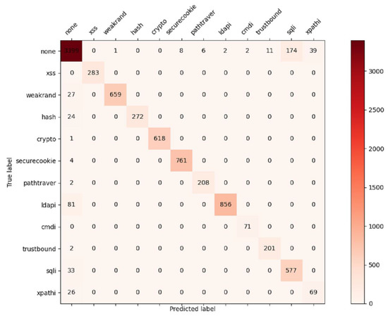 Confusion matrix of ST. This confusion matrix is obtained by using the original statement tree(ST) segmentation algorithm.