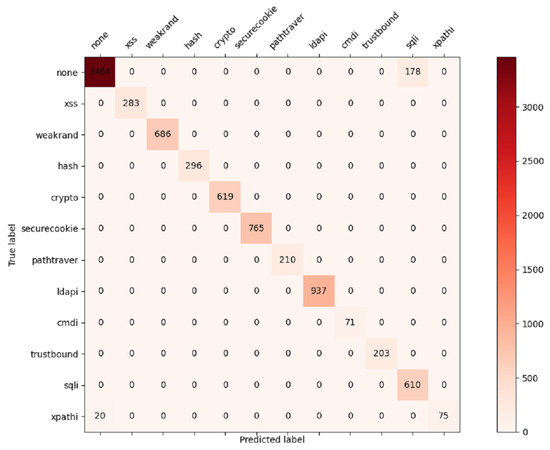 In addition to the OWASP dataset, we also select 12 CWE-numbered vulnerabilities from the SARD JuiletJava dataset to construct a subset containing 15,340 samples. Since each Java file in the SARD dataset contains two kinds of functions: bad (with vulnerabilities) and good (without vulnerabilities), the ratio of positive and negative samples in the subset constructed based on the SARD dataset is 1:1. The detailed information (vulnerability number, vulnerability type, quantity, etc.) of the SARD dataset is shown in Table 2.