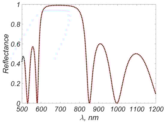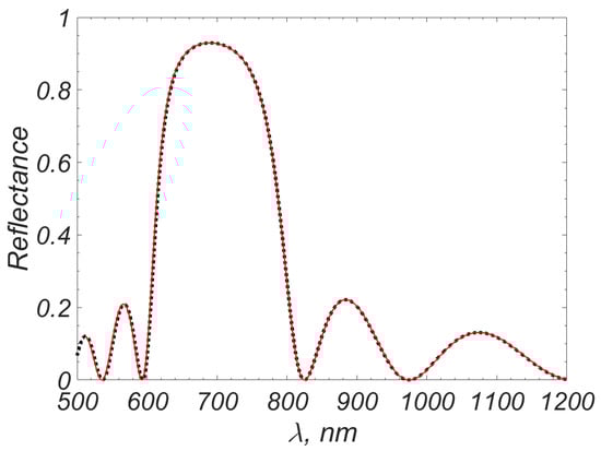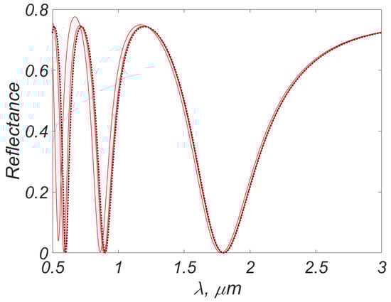3. Let us note one nuance. For practice, it is not only the value of R or T in some characteristic region of the spectrum (for example, in the local minimum or local maximum of reflection) that matters but also the position of this characteristic region. This is due to the fact that in typical photonics problems, the spectra of and have areas of sharp change (large gradients). Therefore, a small horizontal shift of the spectrum leads to a significant change in R and T at a fixed .