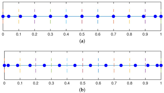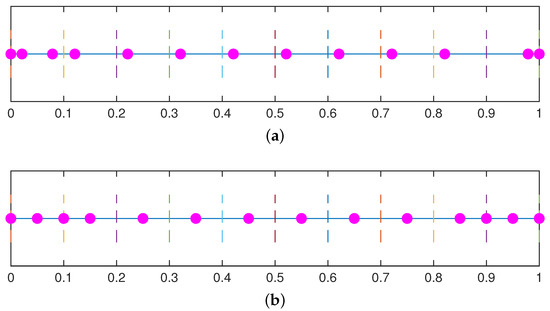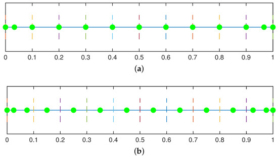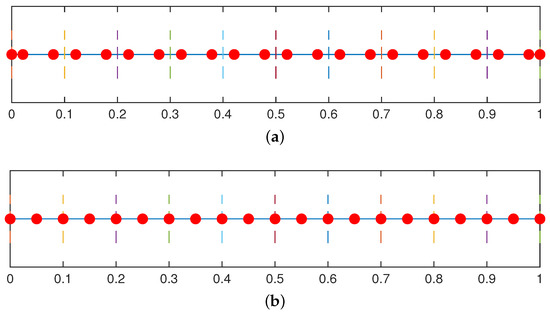 When the number of selected collocation points is larger than the number of unknown coefficients, i.e., N i n t + N b d > N , which indicates that the collocation matrix in the system is over-determined, the linear system can be solved in a least-squares manner [6,27,28]. On the basis of this idea, Lin et al. [27] proposed the isogeometric least-squares collocation method (IGA-L) and presented the conditions and theoretical proof for convergence and consistency. The numerical results of the IGA-L method validate the increased accuracy obtained by adopting numerous collocation points.