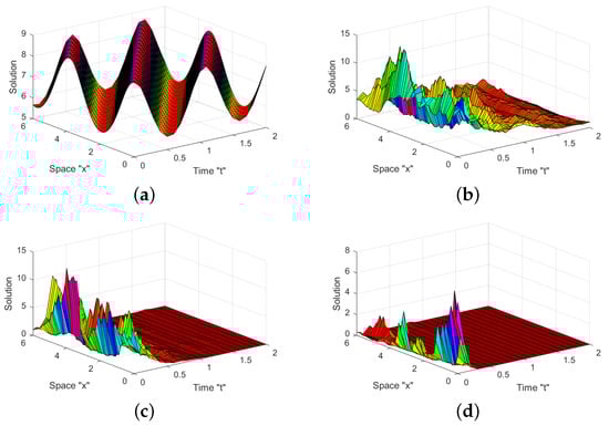 - Al-Askar, E.M.; Mohammed, W.W.; Albalahi, A.M.; El-Morshedy, M. The Impact of the Wiener process on the analytical solutions of the stochastic (2+ 1)-dimensional breaking soliton equation by using tanh–coth method. Mathematics 2022, 10, 817. [Google Scholar] [CrossRef]