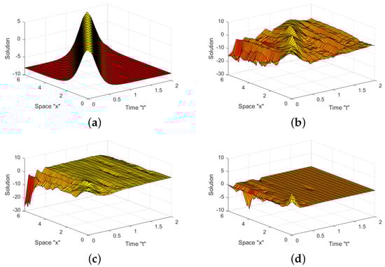 - Hirota, R. Exact solution of the Korteweg-de Vries equation for multiple collisions of solitons. Phys. Rev. Lett. 1971, 27, 1192–1194. [Google Scholar] [CrossRef]