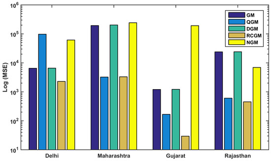 - In case of all states along with Delhi, the values of MAPE are optimal. Addition to that, Mean absolute errors are also calculated for this model. Inspecting these values, it is concluded that these values are also quite optimal for RCGM. The analysis of MAE and MSE are shown in Figure 4 and Figure 5.