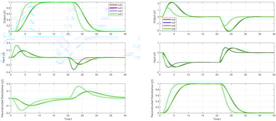 With respect to the critical point , the Nyquist curve of the MRDP-PIDA controller (15) in Figure 5 satisfies the stability condition in linear control. However, due to the presence of the saturation nonlinearity (which is a sector nonlinearity), the loop with the MRDP-PIDA controller does not satisfy the absolute stability requirement (30). This can lead to more complex responses with oscillations or even instability. On the other hand, the critical loop is not affected by the Nyquist curves of the modified PIDA controller with tuning in expression (27). Thus, satisfying the conditions of absolute stability for arbitrarily large when is in good agreement with the ideal shapes of the step responses obtained by simulation.
