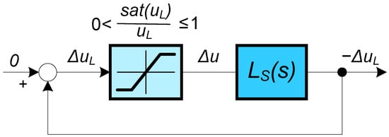 Nonlinear standard form of the loop with the linear part (31) and the saturation nonlinearity from the sector .