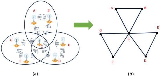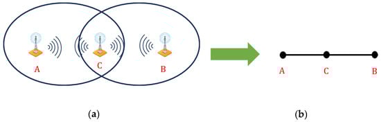 As the number of wireless networks and services increase, this leads to many transmission stations that may be close to each other. Consequently, in most cases, there is at least one transmission station that will overlap with many other stations. This inhibits the ability of the receiver to decipher incoming signals. This concept is illustrated in Figure 1, which shows a typical situation in which the signal of transmission stations A and B overlap in the vicinity of transmission station C as in Figure 1a, while Figure 1b shows the modeling of this interference by path graph. Whenever the number of transmission stations increases, as Figure 2a, every station hopes to increase its coverage area, which leads to more physical overlapping and hence, more radio frequency interference. This situation can be modeled by the friendship graph as shown in Figure 2b.