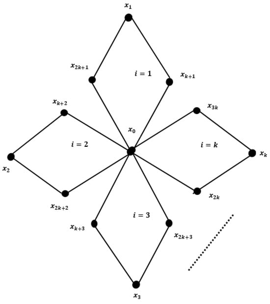 , and all have one common vertex. For an illustration, is shown in Figure 3.