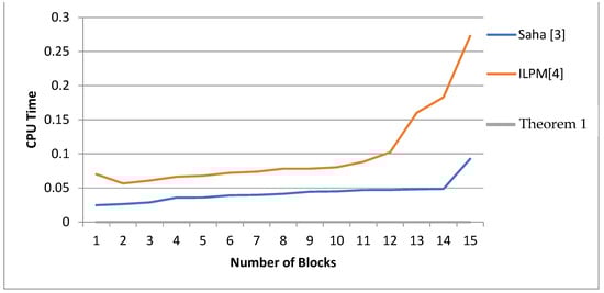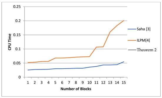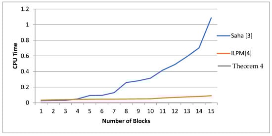 According to the running time, Table 4 and Figure 14 show that the proposed results in Theorem 4 take the constant time complexity O(1), while the proposed results in [] take O(n3). On the other hand, the proposed results in Theorem 4 take less time than the proposed results in [].
