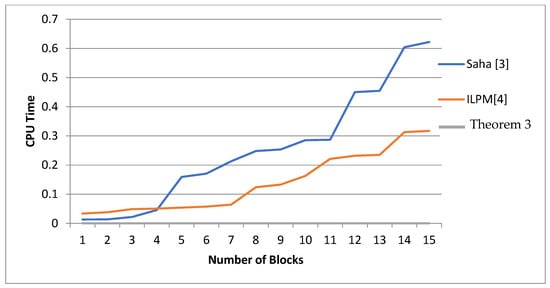 According to the running time, Table 3 and Figure 12 show that the proposed results in Theorem 3 take the constant time complexity O(1), while the proposed results in [] take O(n3). On the other hand, the proposed results in Theorem 3 take less time than the proposed results in [].