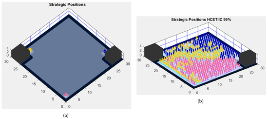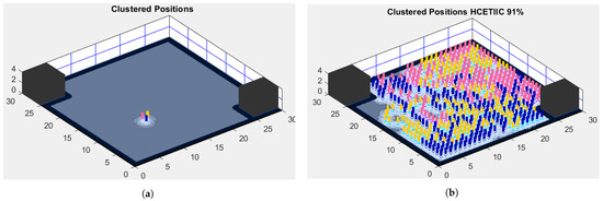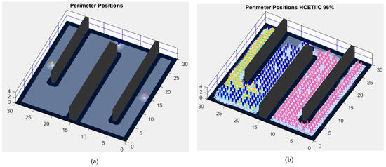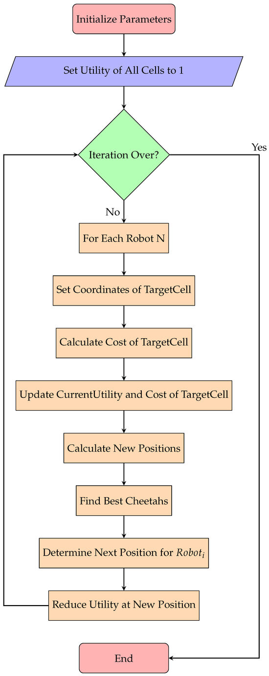 Nevertheless, an often-overlooked aspect of multi-robot exploration is the role of the initial start positions. Conventional methods [30,31,32] typically employ a simplistic start position. While these methods offer the advantage of simplicity, they may not always yield optimal exploration outcomes, especially in complex or constrained environments [33,34]. The interplay between initial configurations and dynamic exploration is intricate. While dynamic exploration techniques adapt to evolving environments, the initial configuration can offer a strategic advantage. Especially in scenarios where the environment’s broad layout is known, but specific details evolve, starting with an optimal configuration can expedite the exploration process. In response to this gap, we introduce the hybrid cheetah exploration technique with intelligent initial configuration (HCETIIC). This novel method combines the merits of the cheetah optimization (CO) [35] with a unique strategy for determining the initial configuration of the robots. We propose that this hybrid approach can significantly enhance the exploration efficiency and robustness, thereby pushing the boundaries of what multi-robot systems can achieve.