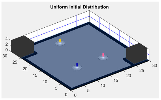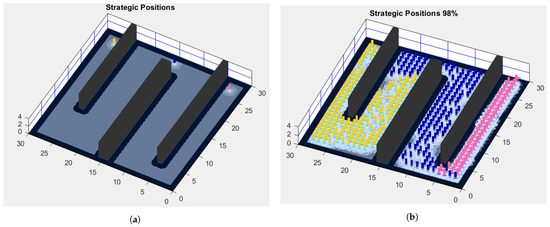 A particularly challenging task in these scenarios involves effective exploration and mapping of unknown and potentially hazardous environments [22,23]. While the dynamic nature of exploration and mapping, such as simultaneous localization and mapping (SLAM) [24], plays a pivotal role in mobile robotics, our research specifically delves into the nuanced impact of initial configurations on exploration efficiency. Real-world scenarios, such as time-sensitive rescue missions or intricate surveillance tasks, often underscore the significance of these initial configurations. Recent research has introduced numerous strategies aimed at optimizing the process of multi-robot exploration. These techniques primarily employ hybrid methods, merging principles of coordinated multi-robot exploration (CME) [25,26] with different metaheuristic algorithms [27]. While these strategies employ diverse approaches, they share a common objective: to enhance real-time decision making, coordination, and task distribution among the robots involved in the exploration [28]. However, there remains a largely untapped potential in these exploration strategies—the strategic configuration of the initial start positions [29], a critical aspect that significantly influences the exploration’s efficiency and effectiveness.
