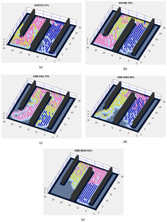 In the field of multi-robot exploration, hybrid methods have been developed that blend deterministic coordinated multi-robot exploration (CME) [51] with a metaheuristic algorithm. This fusion aims to leverage the advantages of deterministic strategies and metaheuristic approaches, producing a more robust and effective exploration strategy.
