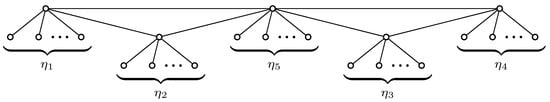 On the other hand, if then , where is the n-order connected tricyclic graph with maximum degree and minimum degree at least 2 (see Figure 11). Here,