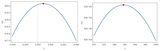 The profile of the log-likelihood functions for k and c of the Ethereum real data set.