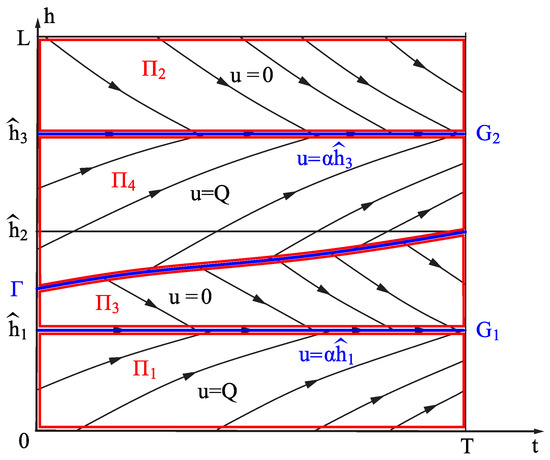 When the state of the system is in each of the regions (), the control is either minimal (0) or maximal (Q). When the state of the model transfers from one region to another, the control is switched. The specifics are that the border between regions and is defined by the Rankine-Hugoniot line (Γ). The conditions that determine this line are non-trivial (15).
