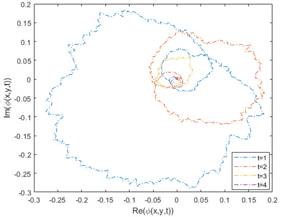 symbolizes the nonlinear wave envelope, and ∗ represents complex conjugate. The first and second terms symbolize the temporal evolution of the wave and the disturbance of the dispersion that is given by the coefficient of a. The parameter b is distinct from the conventional Kerr law nonlinearity. The noise is a Brownian times derivative of and identifies noise amplitude [36]. Equation (1) depicts the bending of light beams, hole waves, oceanic rogue waves, and erbium atoms [34,35].