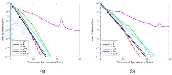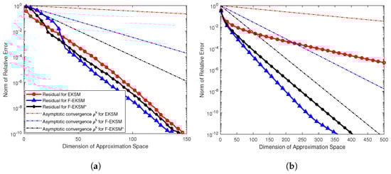 Therefore, -EKSM converges at least linearly with a convergence factor , where depends on s and a. For any given pole , we can find the artificial parameter used in (9) such that it minimizes . Let be the minimized ; then, we need to find that minimizes . We denote the minimized by , which is the lowest upper bound on the asymptotic convergence factor.