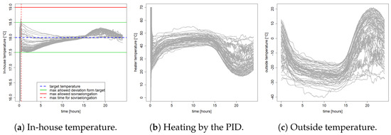 Figure 4, instead, shows (a) the in-house temperature, (b) the heat provided by the PID controller, and (c) the outside temperature, all over time for each one of the 60 days into the Yosemite temperature dataset. Specifically, it is easy to notice that the control policy implemented by the PID controller is always safe (i.e., Figure 4a).