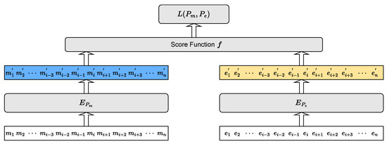 The problem of the entity linking is then reduced to using a score function f, i.e., , to quantify the similarity between and . In the current mention–entity pair , if the entity e is the golden entity, the score should be high, or low if otherwise.