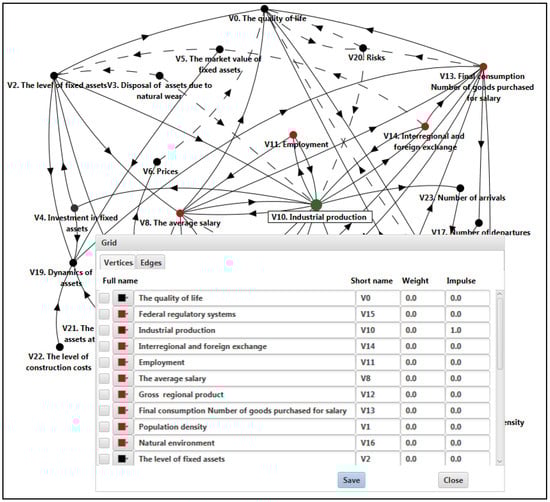 In the research, cognitive simulation is supported by the program complex of cognitive modeling, ‘Program for Cognitive Modeling and Analysis of Socio-Economic Systems of the Regional Level’ (CMCS) [].