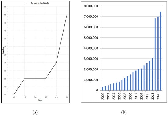 Figure 18 shows a graph of changes in the level of fixed assets (Figure 18a), which is compared with a graph of changes in this indicator in the region. As shown in Figure 18, the trends in model changes do not contradict those observed in reality.